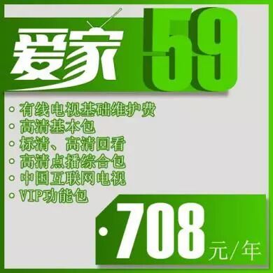 爱家59套餐在39套餐的基础上,增加了中国互联网电视,VIP频道功能包两个内容。