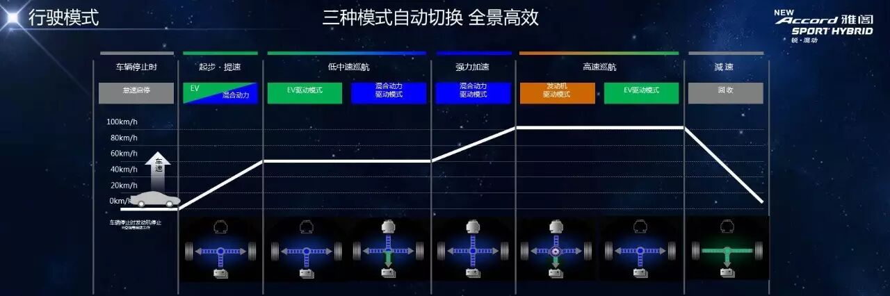 对于不同的行车路况条件,传统混合动力系统是以动能分配的形式来驱动,而新雅阁锐混动则开创性使用动能切换的形式,系统能自动判断电机与发动机的擅长领域,在“EV行驶模式”、“混合动力行驶模式”、“发动机行驶模式”三种模式之间无缝自由切换,避免动能浪费之余,带来了线性的动力输出。