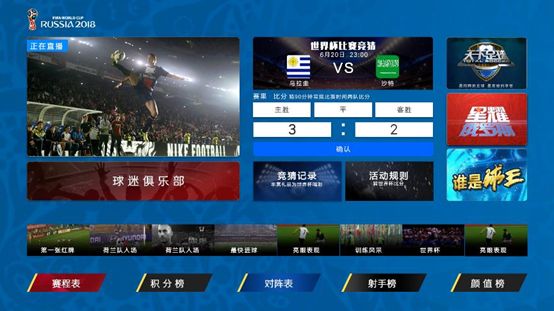 打开中国互联网电视专区内的“世界杯专题“页面