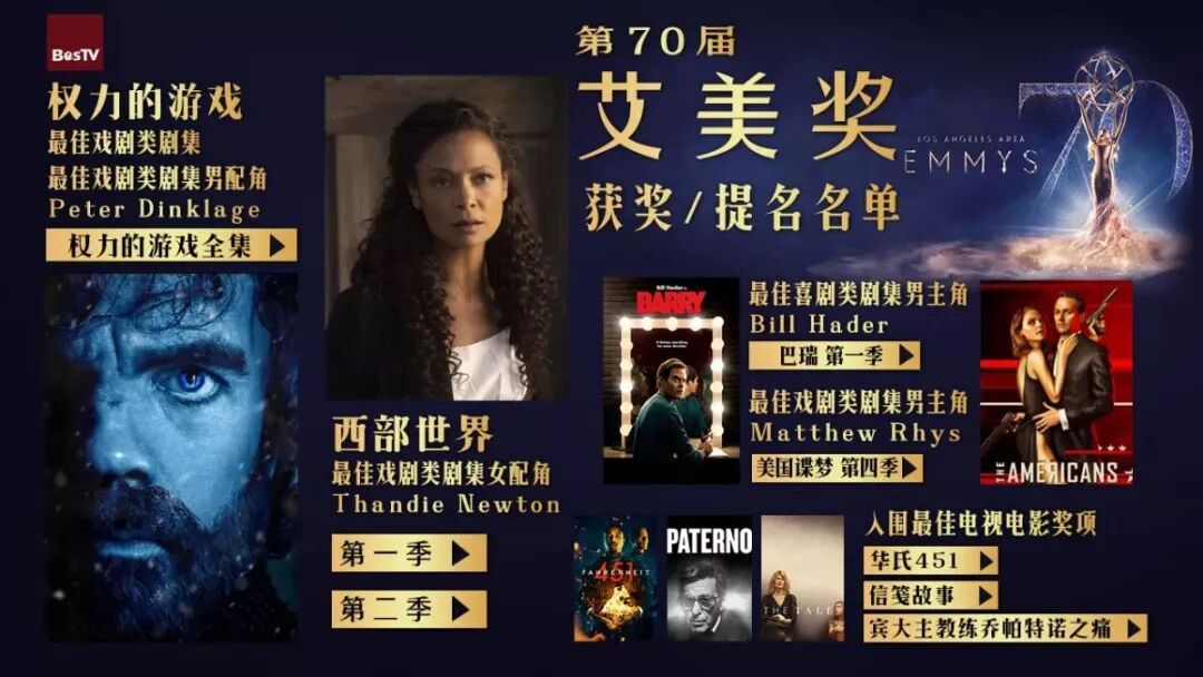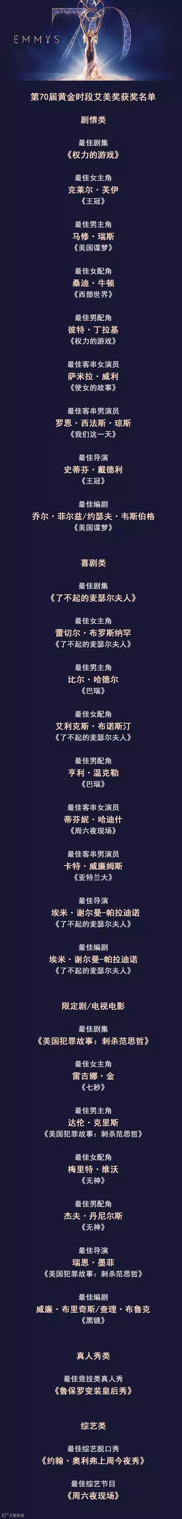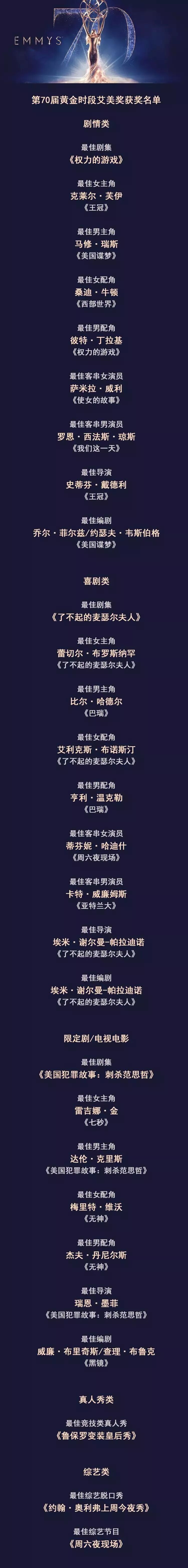 现在,第70届艾美奖获奖名单已全部揭晓。
