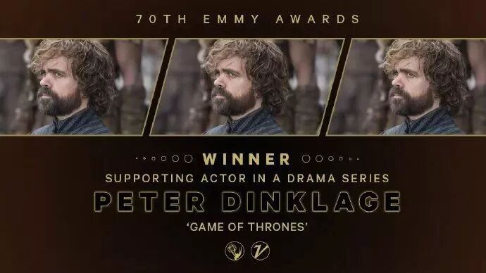 在剧中饰演“小恶魔”的彼特·丁拉基喜获最佳男配。因为患有侏儒症,彼特的身高只有135cm,但这并没有阻碍他在演员的道路上发光发热,凭借在《权力的游戏》中出色的演出,他受到了全世界影迷的喜爱。