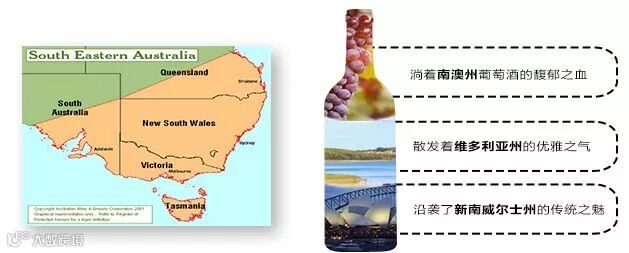 “东南澳”是一个产区统称,其范围涵盖了澳大利亚三大葡萄酒产区——南澳洲、维多利亚州和新南威尔士州。