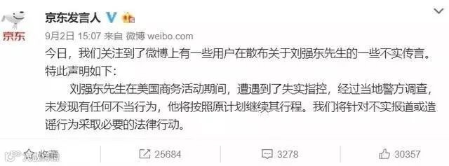 正是警方的公开说明,导致京东股价暴跌,最近两个交易日,京东美股暴跌约16%,两天市值损失逾72亿美元。