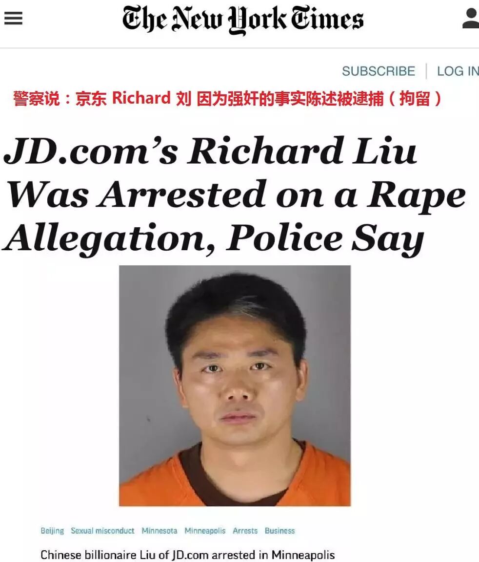 美国当地时间9月4日,明尼苏达警方公布了5页出警记录,称刘强东涉嫌的是一级强暴重罪,最低处12年徒刑,最高30年监禁。