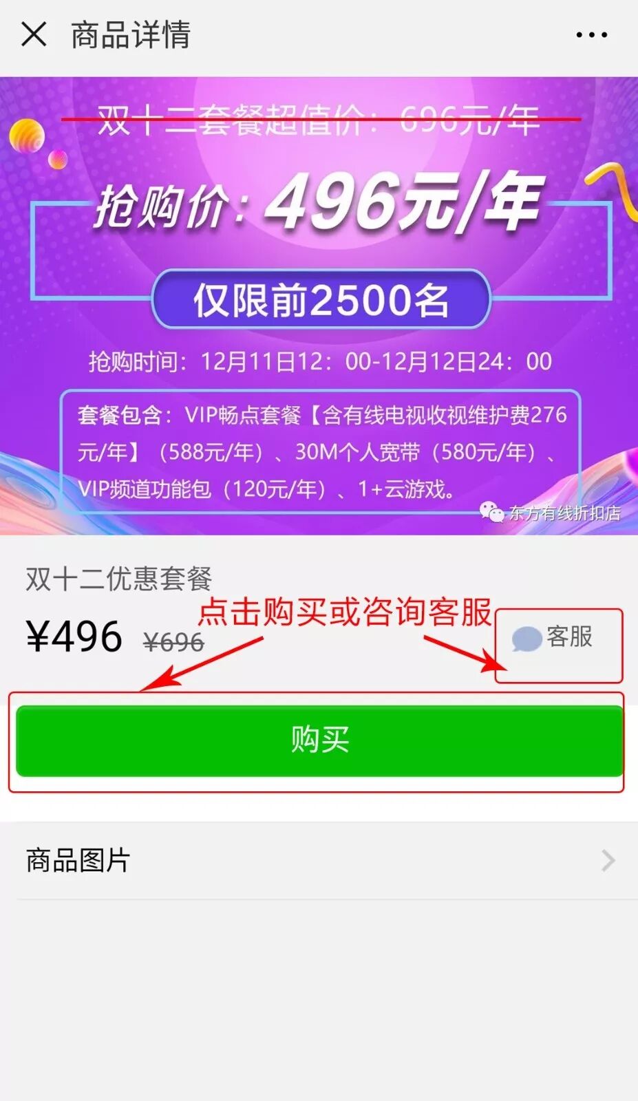 (2)不满足上述条件用户,在活动期间只能点击下方按钮,按照双十二优惠价696元订购,如有疑问可拨打96877或62870002。