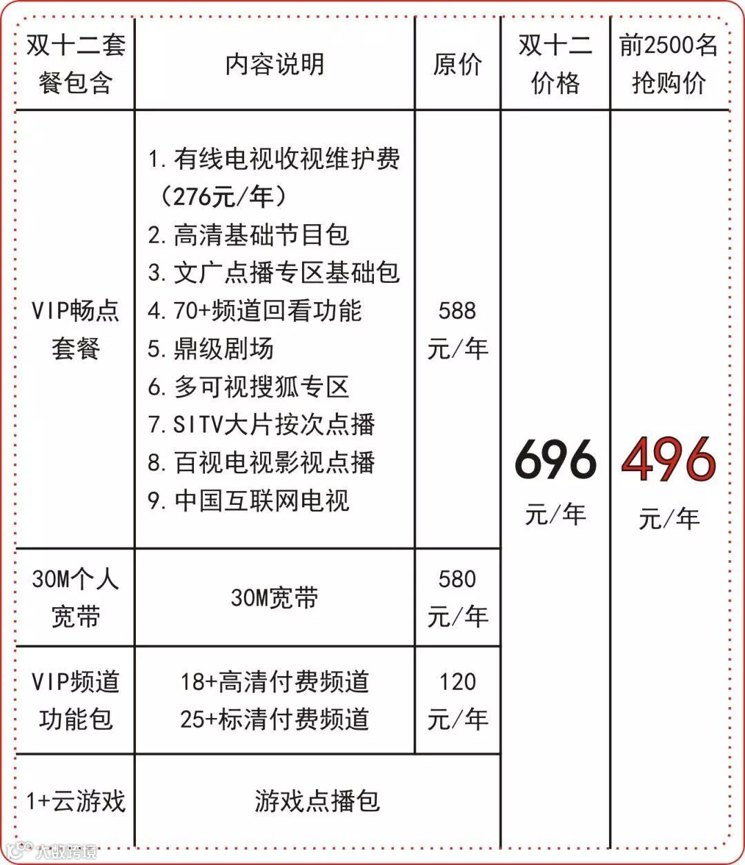 (1)本次496元/年套餐仅限于不额外增加设备用户申请,即原有设备为“高清交互型机顶盒+EOC”或“高清智能型机顶盒”的用户。