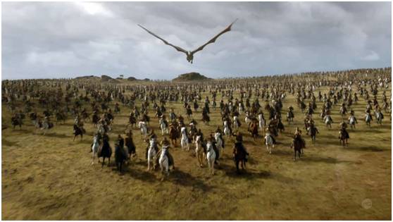 各路大军集结,到底是战遍四方,还是团结一致,在众多超级烧钱的战争大场面之后,珊莎念出了那句经典的台词:“When the snows fall and the white winds blow,the lone wolf dies but the pack survives(降雪刮风时,孤狼必死,狼群可活)。” 似乎是在暗示即将到来的突变,众人命运将何去何从。