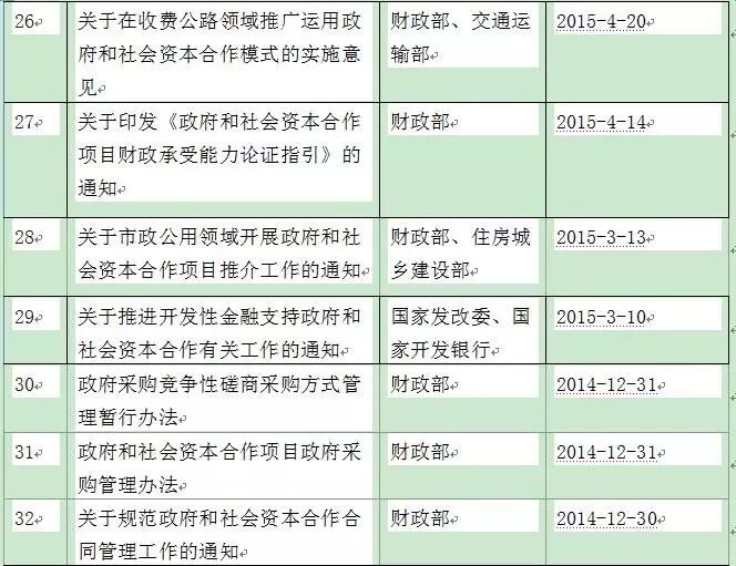 导读:近年来中央有关部委发布的政府和社会资本合作模式(PPP)有关文件大全,详细表格请点击"阅读原文"下载。