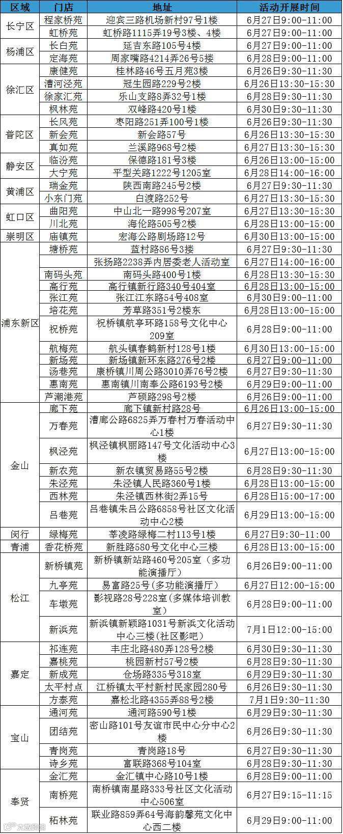 我们将在在各区内东方社区信息苑(点)、居委活动室、社区活动室、中小学校区等居民集中活动场所依次开展活动,期待您的到来!