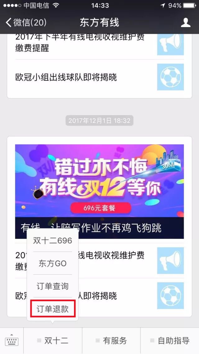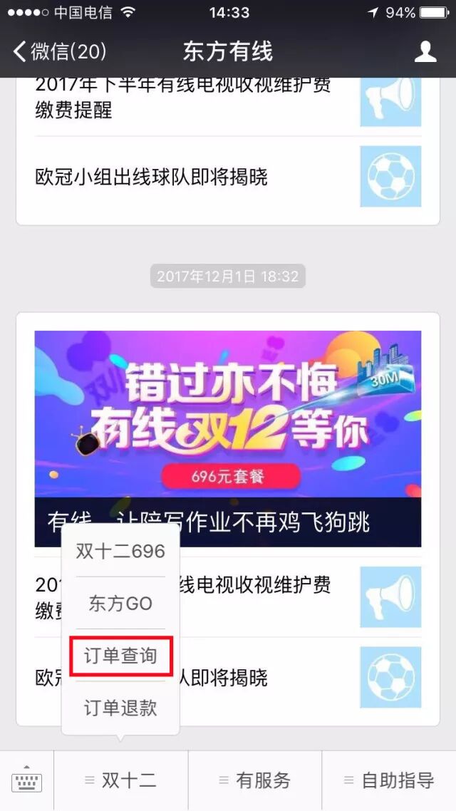 进入东方有线公众号号,左下角双十二专区