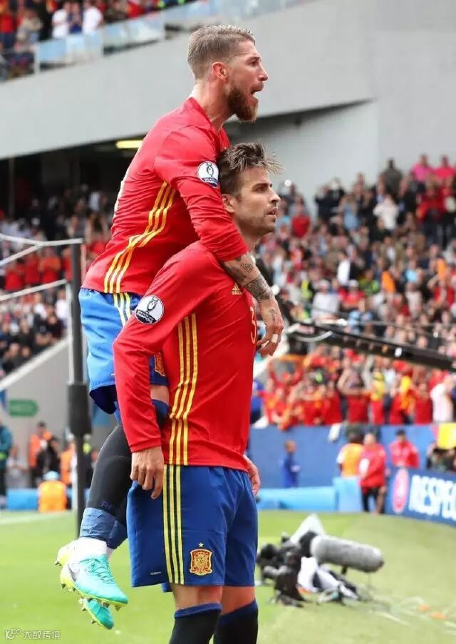 西班牙帅哥球员皮克87分钟头球射门!天呐,必须给特写不是。于是皮克在进球后立刻冲向场边摄影人员求特写,结果被相爱相杀多年的队友拉莫斯第一时间扑上身抢了镜头。😅