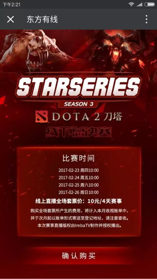 方式①:东方有线公众号-【要订购】-【DOTA2直播】