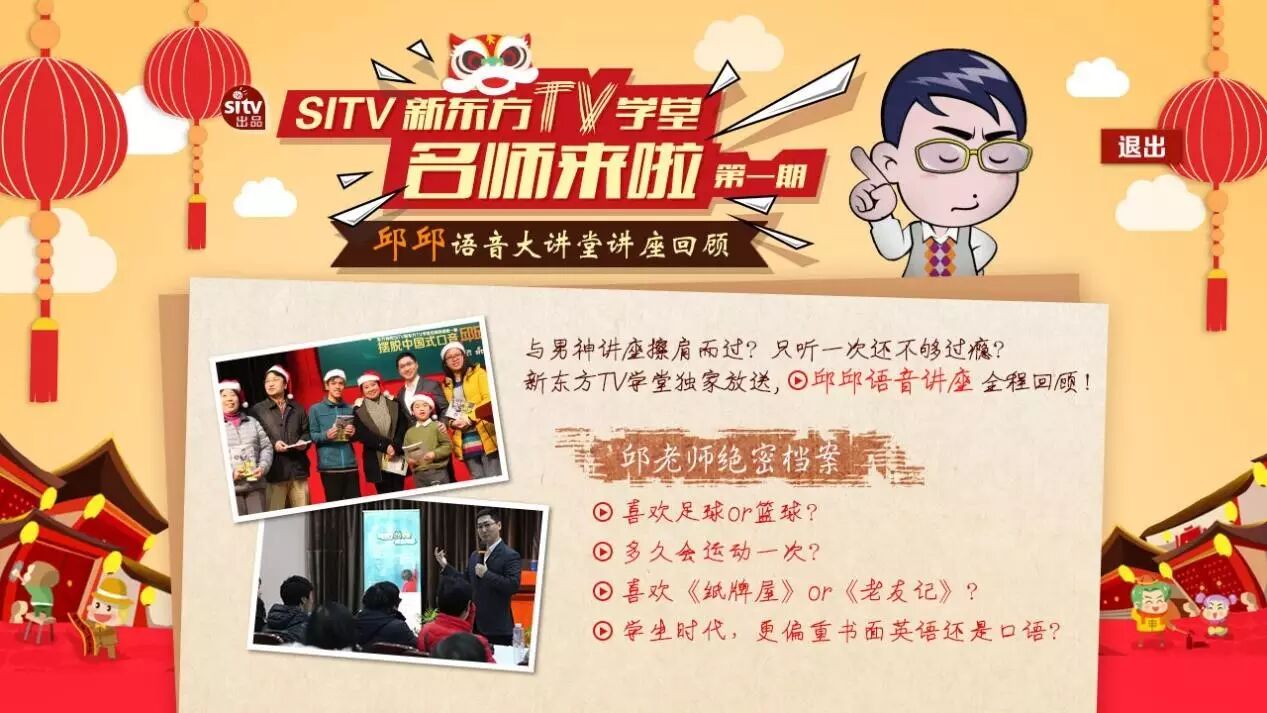 与男神擦肩而过?只听一次还不够?错过新东方TV学堂名师来啦线下讲座的朋友们,邱邱老师的忠实粉丝们看过来!1月30日起SiTV新东方TV学堂独家放送,邱邱语言讲座全程回顾,说流地道英语的同时还有新东方口语男神邱老师的绝密档案哦~