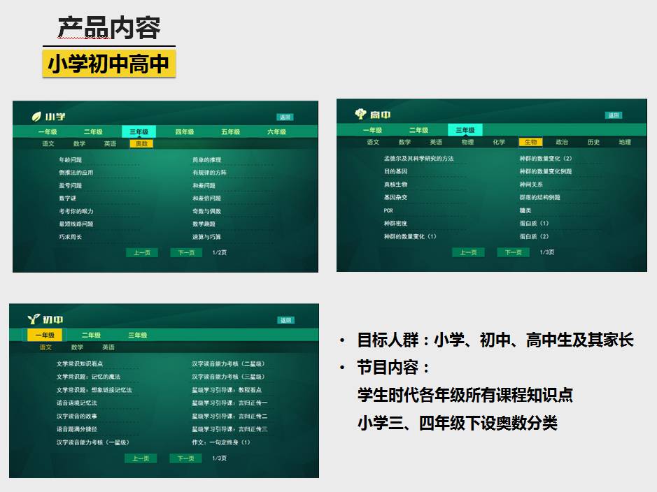 覆盖小学、初中、高中全年龄段全学科课程,数千小时教学内容,符合电视用户的独家课程设计,助学子金榜题名!