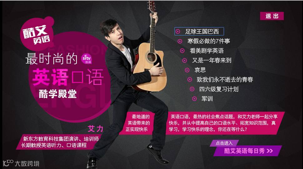 酷艾英语由国内最炙手可热英语讲师-艾力主讲,针对有英语能力提升需求的人群,最地道的英语口语,最热的社会焦点话题,和艾力老师一起分享英语带来的快乐。