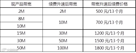 一、老用户续费年包后,可享:1、带宽升速;2、送一个月时长;具体为: