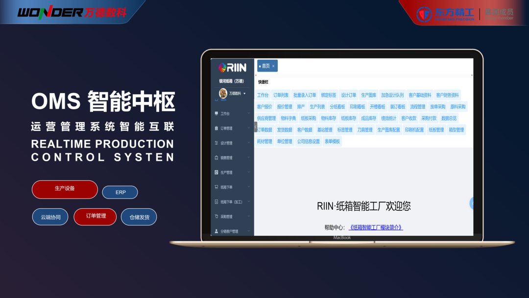 与此同时,万德数科副董事长赵江先生发布会上还为现场观众展示了万德数科最新推出的OMS(Operation Management System)智能运营管理系统。该系统不仅集成了ERP系统的所有功能,更是针对纸箱厂及相关生产线的全厂智能管理需求进行了深度定制优化,构建起一个“一码通、智慧物联”的智能工厂管理平台。万德数科OMS系统具备五大优势: