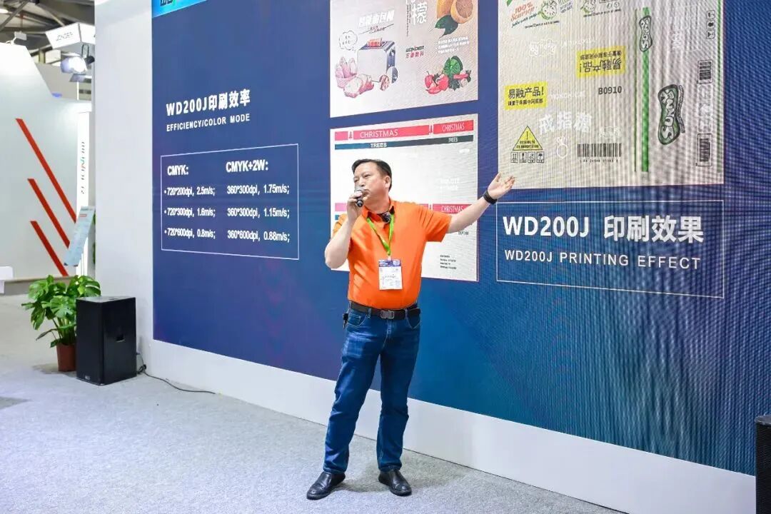 开展首日上午,万德数科展台(N1馆B50-3)举办了WD200J水墨高速数码印刷机新品发布会,吸引了众多海内外客户、行业专家及媒体代表到场。发布会由行业知名媒体全瓦通总经理罗旭峰主持,万德数科副董事长赵江先生亲临现场,深度解读了WD200J的四大核心突破:
