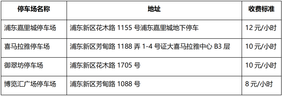 上海新国际博览中心停车场车位有限,如遇展馆停车场已满情况,可前往以下停车场停车。