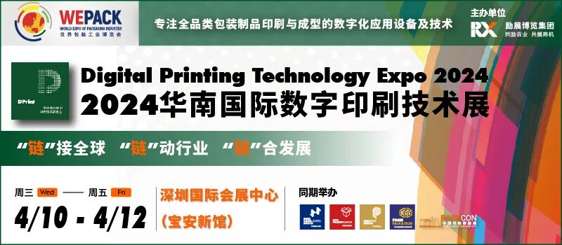 2024年4月10-12日,WEPACK世界包装工业博览会旗下包装系列展-2024 华南国际数字印刷技术展览会将在深圳国际会展中心(宝安新馆)盛大开幕!