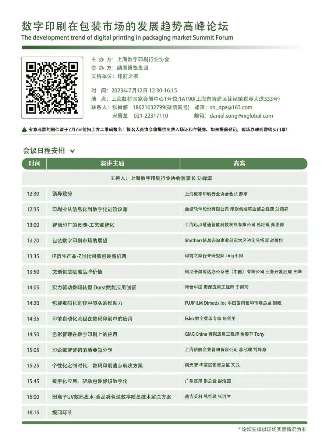 为加快推进数字印刷在包装市场的应用,助推数字印刷的发展。上海数字印刷行业协会定于在7月12-14日“2023 上海国际数字印刷技术展览会”期间举办“数字嘉年华-DP小剧场 —— 数字印刷在包装市场的发展趋势高峰论坛”。
