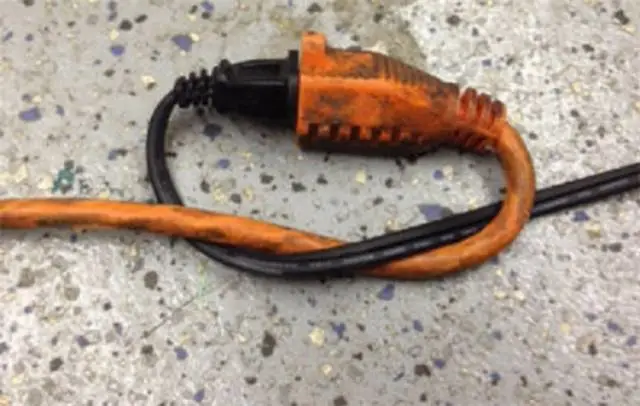 4、 使用插座延长线的时候打个结,这样就不容易分开。
