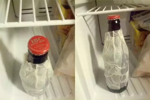把它浸湿,然后裹在饮料瓶上,冰冻15分钟,就能得到透心凉的饮料了。