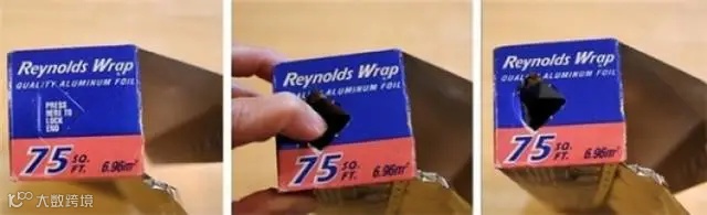 3、 家用保鲜膜、锡纸包装盒两侧的小纸片需要抠进去。