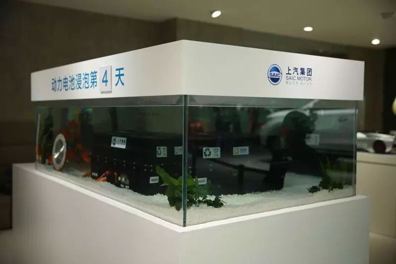 北京车展上,为了最直观地反映荣威e950电池的防水能力,荣威展台甚至上映“鱼电共舞”,将电池浸泡在水中十多天,依然完好无损,既没有露电,也没有进水。在国内的新能源车企里,敢这么做的目前只有上汽一家。