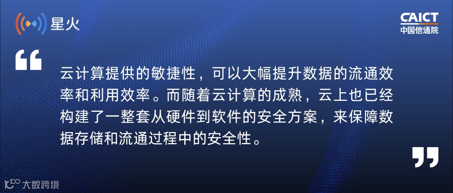 得益于我国在互联网应用创新和产业数字化转型上的积累,我们拥有极其丰富的数据资产。但当数据在一个个的孤岛中,并不能发挥其应有的价值。只有被用起来,被用好,数据才能真正产生价值。在线化的云计算,可以把离线的数据在线化,成为数据高效流通的天然载体。云计算提供的敏捷性,可以大幅提升数据的流通效率和利用效率。而随着云计算的成熟,云上也已经构建了一整套从硬件到软件的安全方案,来保障数据存储和流通过程中的安全性。