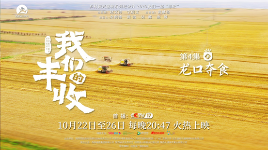 10月22日至10月26日每天20点47分,锁定中央广播电视总台农业农村频道(CCTV-17),10月23日起每天18:00,相约4K花园、优酷、爱奇艺、腾讯视频、西影视频!看《我们的丰收》,共赏“丰收画卷”!