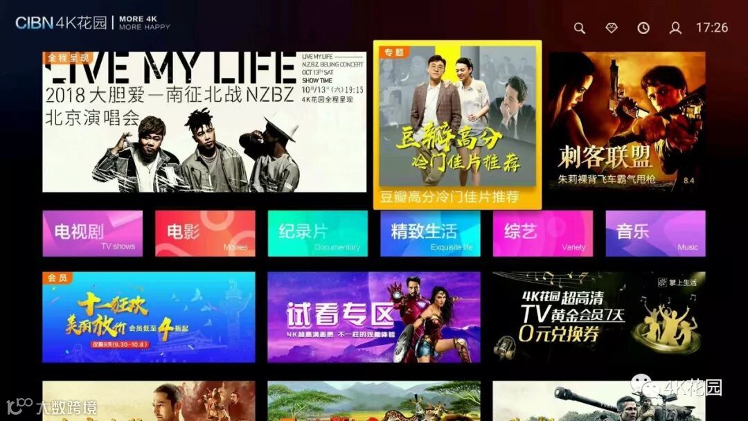【CIBN 4K花园 】TV APP首页:豆瓣高分冷门佳片推荐