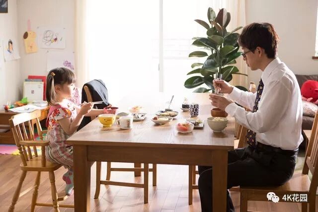 小花和爸爸面对面认真地吃着饭,平静地过着生活……