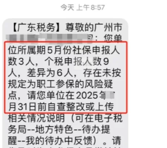 ❗❗典型问题:比如社保报3人,但个税报9人,差异过大可能被认定为未按规定参保。