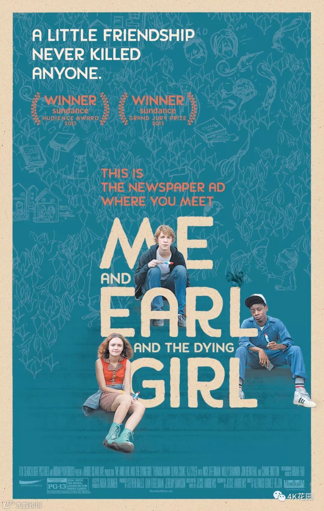 顾名思义,影片有三位主人公,我、厄尔和将死的女孩。即将高中毕业的三个少年,一个白人家庭的高知少年,一个生活一般的黑人小伙,一个濒死的早熟女孩。但看过影片你就会知道,片子其实在讲我与将死女孩的故事。