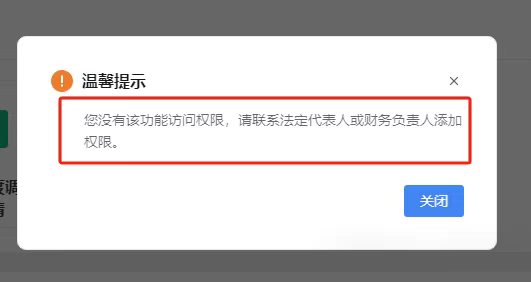 最近,不少企业办税人员在登录电子税务局,准备开具数电发票时,突然被系统弹窗提示 “您没有该功能访问权限,请联系法定代表人或财务负责人添加权限”。明明之前能正常开票,怎么突然就没权限了?