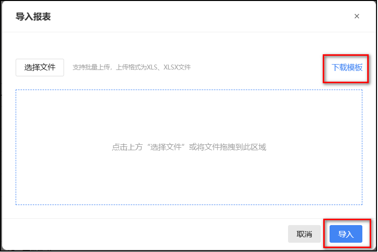 点击“导入”,下载模板后,系统提示如下: