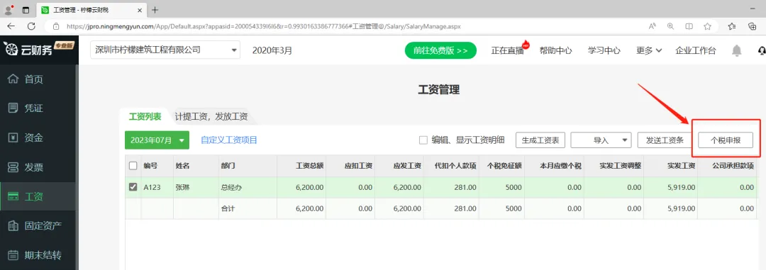 c. 一键申报个税: 在完成工资条发放后,可快速完成个税筹划工作,让您的财务管理更加智能化。同时,该模块还具备一键生成计提发放工资凭证的功能,将您的财务运营变得更加无忧。员工信息智能化管理和五险一金灵活设置,让您能够大幅提高人力资源管理效率。