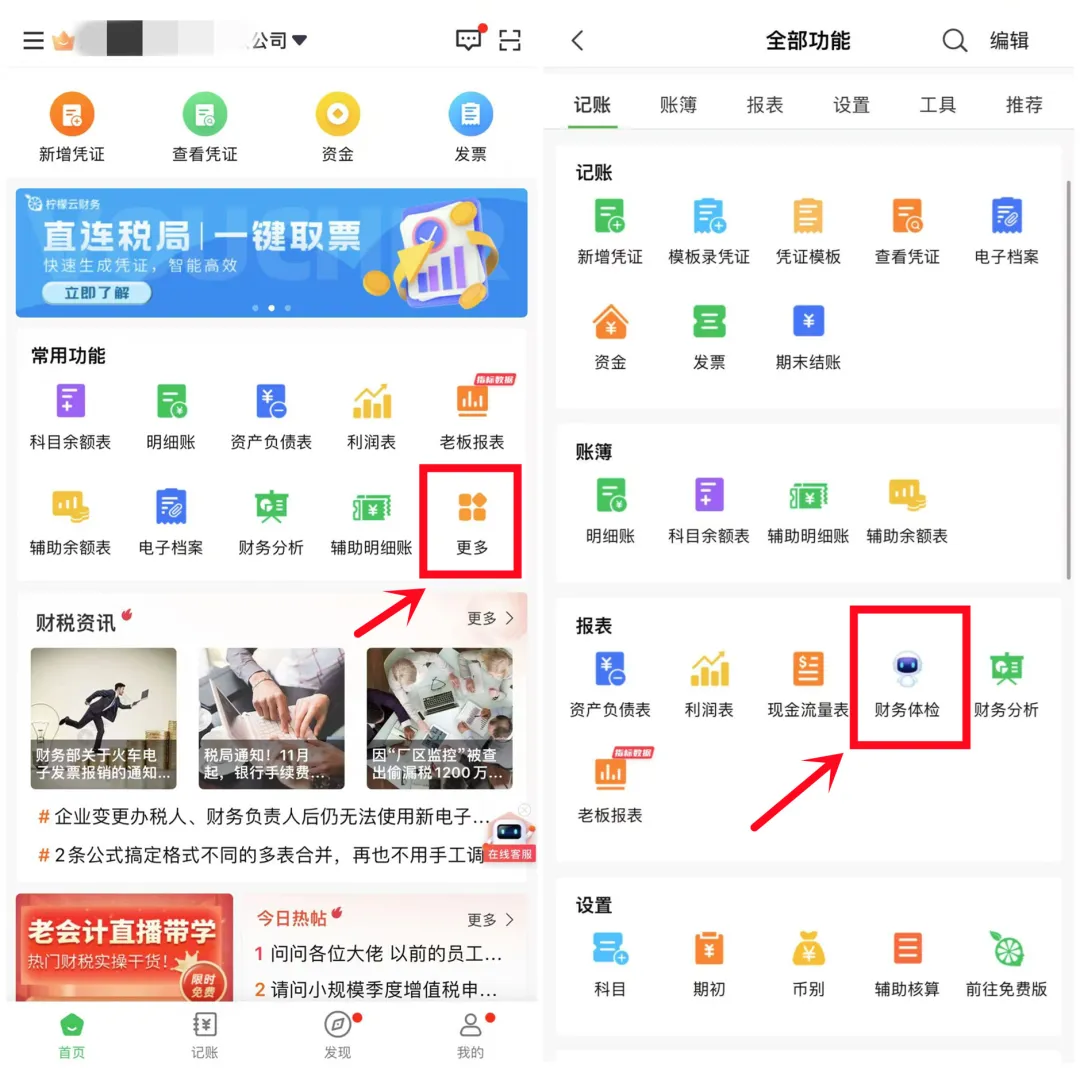 答:柠檬云财务APP【财务体检】功能,旨在帮助企业全面了解自身的财务状况,会计再也不担心做错账了!