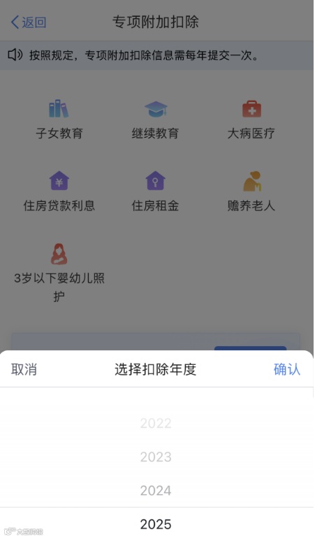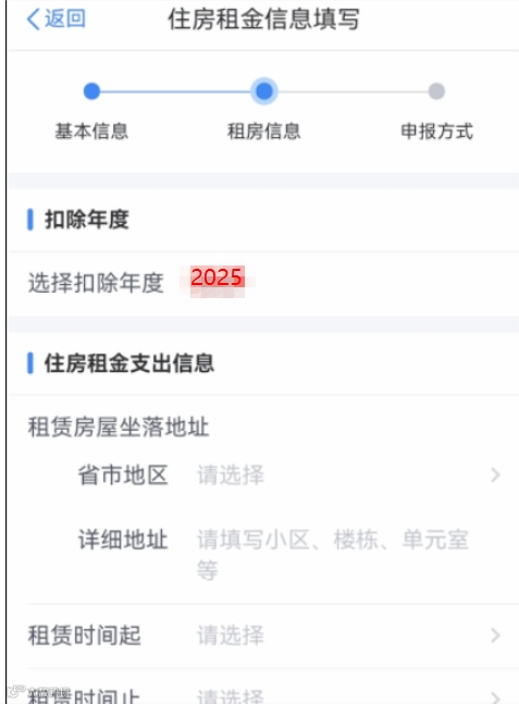 01 点击【住房租金】,选择扣除年度2025,点击【确认】