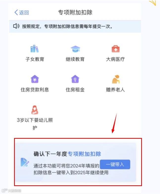 01 若2024年度已填报过专项附加扣除信息,直接点击【一键带入】
