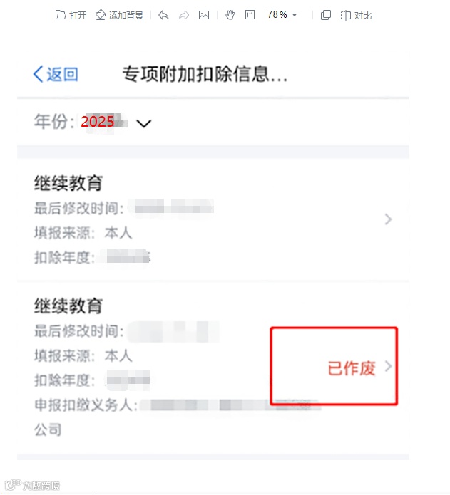 (2)点击进入想要修改的或者作废的专项附加扣除项目,进入修改即可。或者点击进入想要作废的专项附加扣除项目。点击左下角【作废】,确认作废后,即可作废成功。