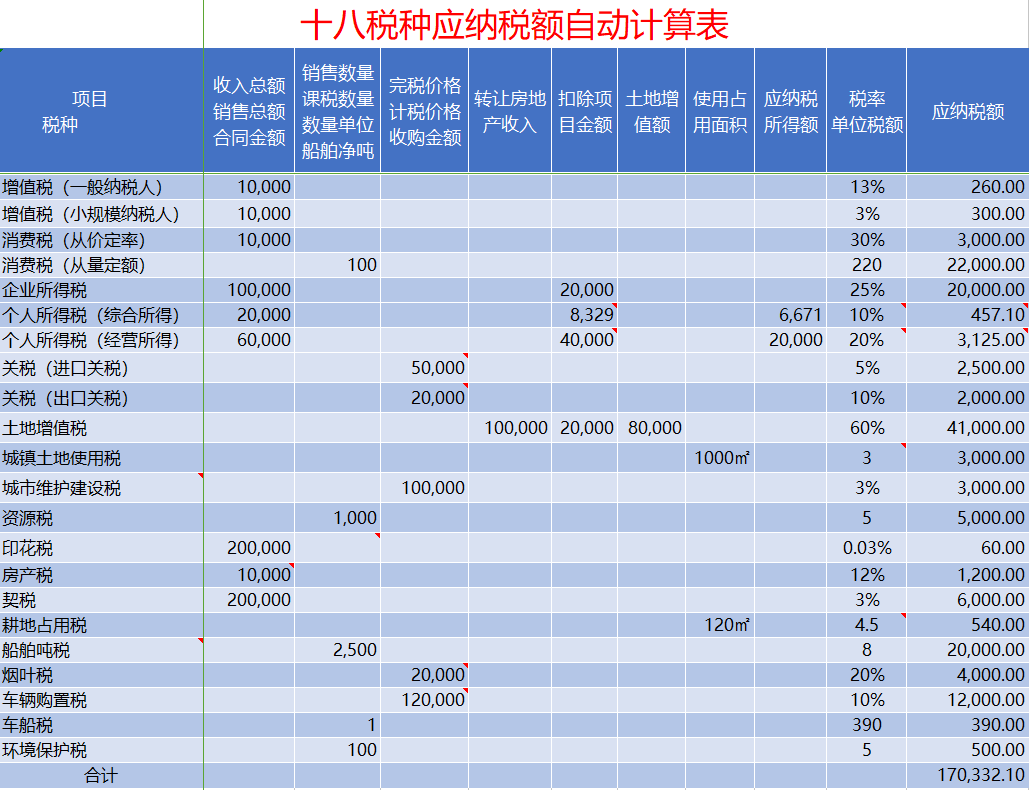 本套资料包含:全税种应纳税额自动计算模板、增值税税额计算公式、企业所得税汇算清缴申报表excel版(带公式-自动计算)、城建税、教育费附加、地方教育附加税(费)申报表(增值税)等,预览如下: