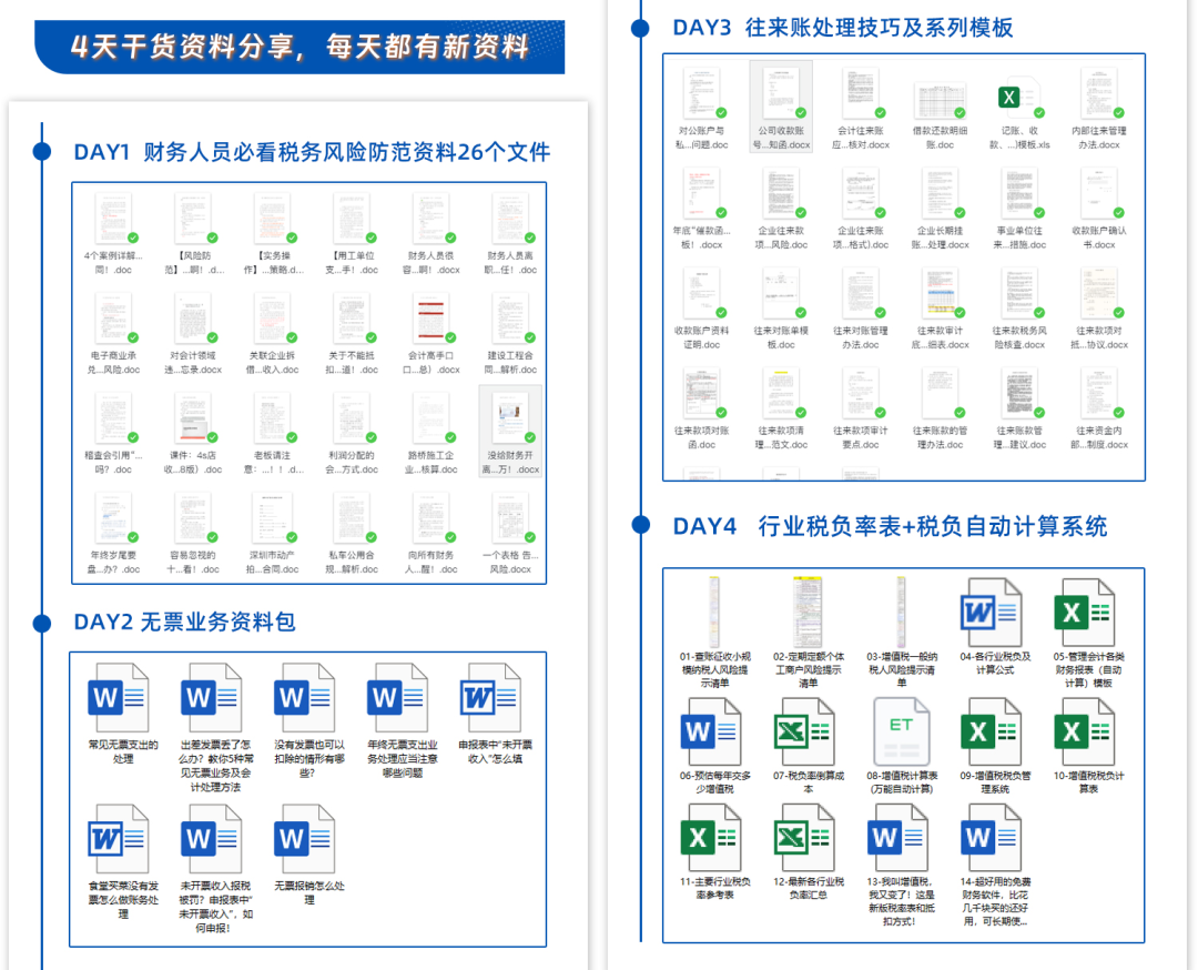 本次4天特训营不仅享受4天干货满满的课程学习,每天到课更有实用资料包领取哦,总超1000份,每天不重样,提升工作效率!