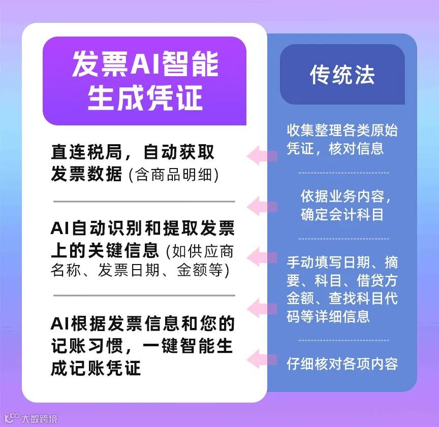 直连税局,一键自动获取发票数据(含商品明细),AI可以自动识别和提取发票上的关键信息,如供应商名称、发票日期、金额等,自动根据发票信息和您的做账习惯,智能生成发票凭证!