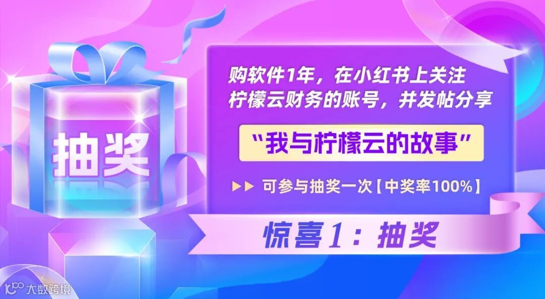 购柠檬云财务软件、业财软件、进销存软件、代账软件及合并报表等软件一年以上,在小红书上关注柠檬云财务的账号,并发帖分享“我与柠檬云的故事”,即可参与抽奖