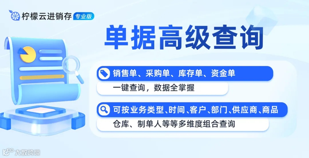 您可以按业务类型、自定义时间、客户、部门、供应商、商品、仓库、制单人等多维度组合查询各类业务单据,如销售单据、采购单据、库存单据、资金单据等业务单据,提高效率。