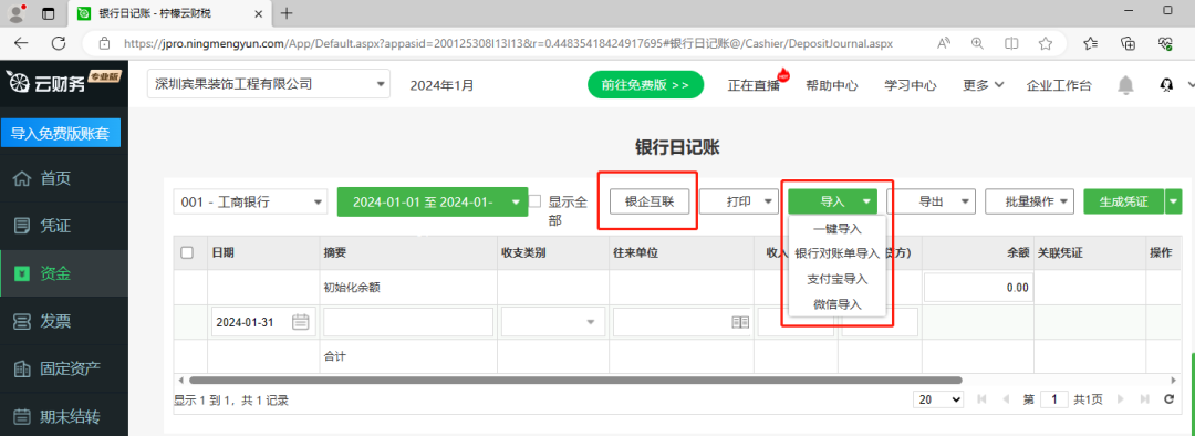 b. 无需调整格式,支持银行流水、银行对账单、支付宝和微信导入:无需任何调整格式,一键导入至资金模块的银行日记账,再一键生成凭证,省去繁琐的人工操作,让你的工作更加简单、快捷!