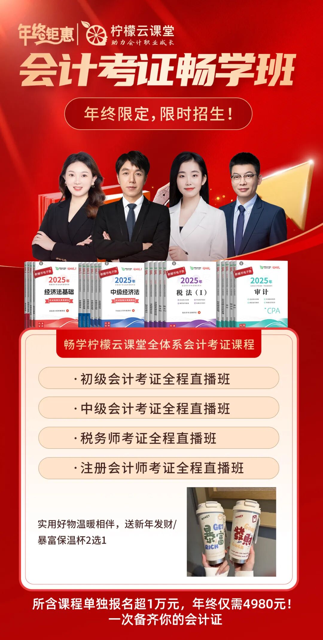 同学们,2025年的会计考证备考已经全面开启!增值税法的正式实施将对考试内容产生深远影响,无论是初级、中级,还是注会、税务师,都需要你们尽早准备,掌握最新政策,提升专业能力。