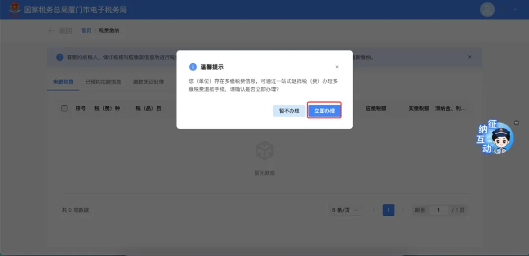 对于申报更正产生的多缴税费,纳税人可通过搜索【一站式退抵税(费)】—【申报产生的多缴退税】办理多缴税费退抵业务。也可通过搜索【税费缴纳】办理多缴税费退抵业务。